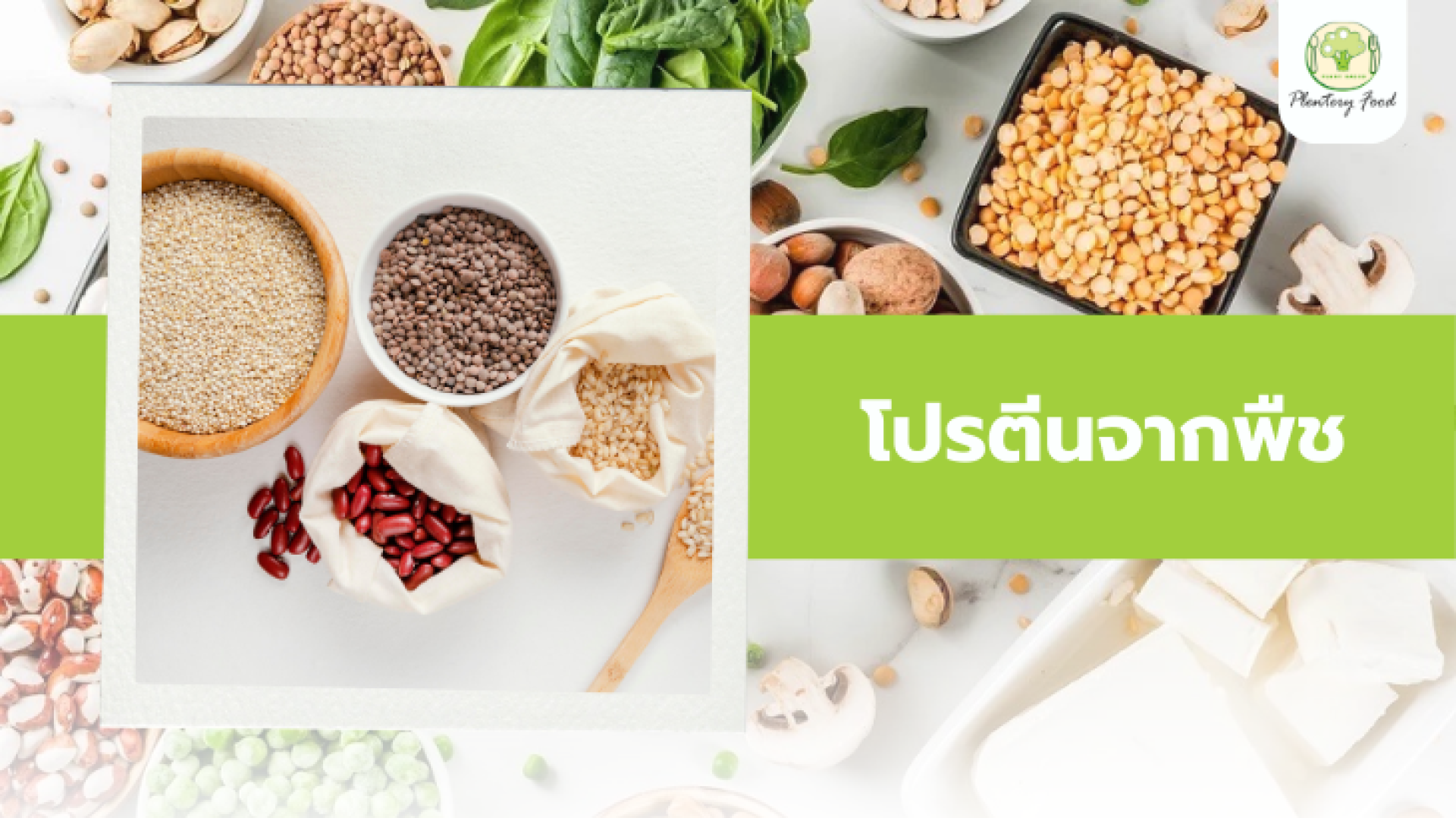 ถั่วเหลือง ถั่วเขียว ถั่วลันเตา ควินัว ข้าวโอ๊ต เมล็ดแฟลกซ์ เมล็ดเจีย ฯลฯ