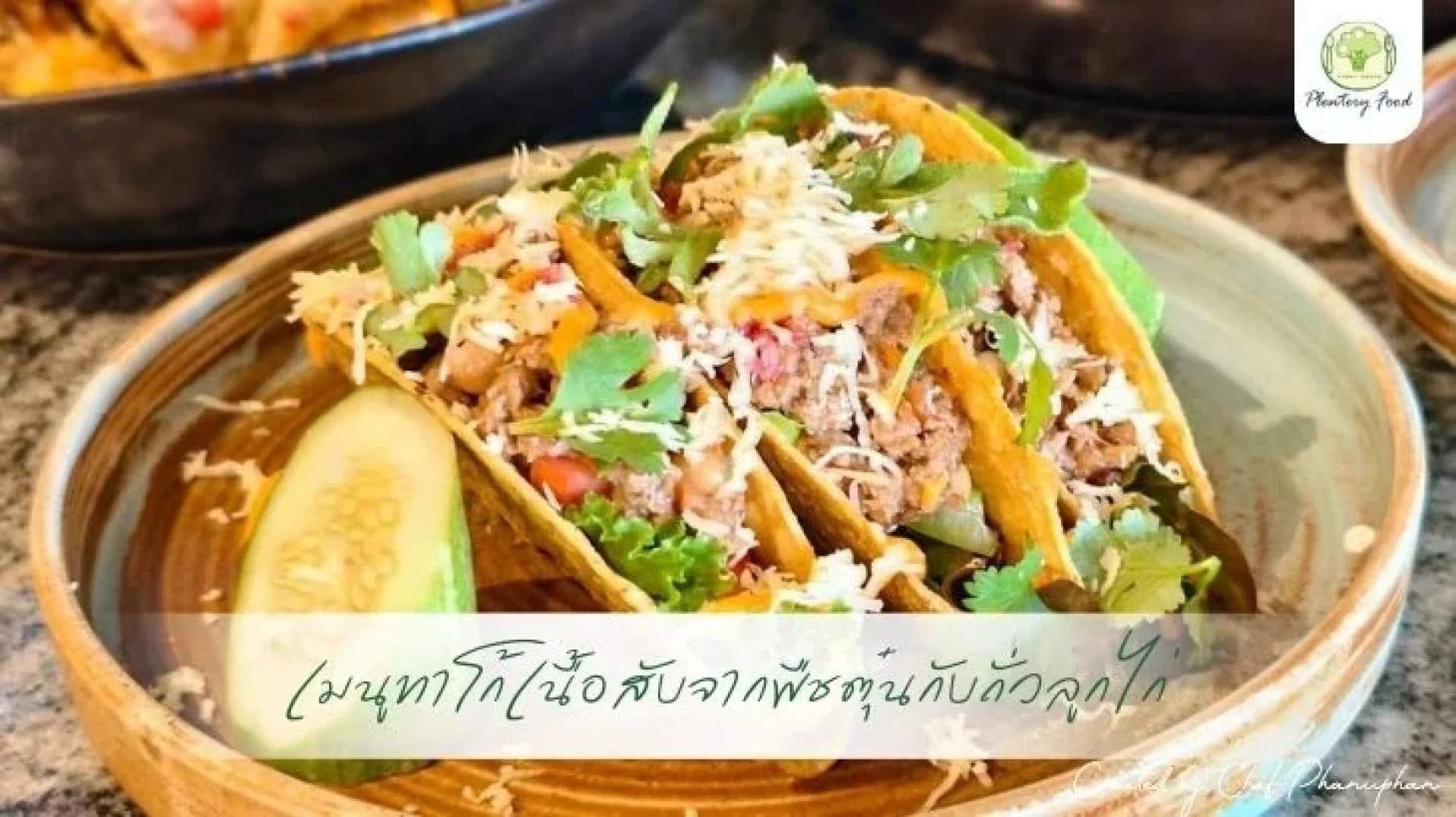 ทาโก้เนื้อสับจากพืชตุ๋นถั่วลูกไก่ วีเแกนฟิวชันสไตล์ตะวันตก