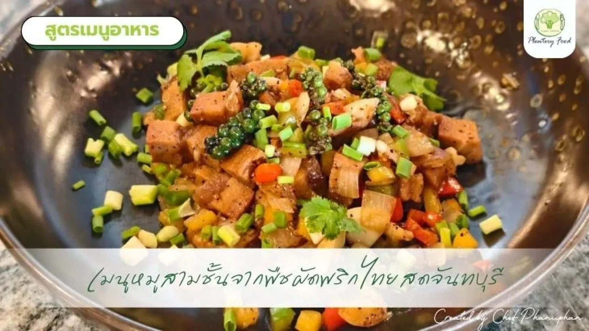 หมูสามชั้นจากพืชผัดพริกไทยสดจันทบุรี คือเมนูอาหารไทยประยุกต์ที่ยังคงหัวใจของรสชาติพื้นบ้านไว้อย่างครบถ้วน ทั้งเผ็ด หอม และเข้มข้น เป็นอีกหนึ่งตัวอย่างของอาหารจากพืชที่พิสูจน์ว่า อาหารไทยรสจัด สามารถเลือกใช้วัตถุดิบจากพืชเเทนการใช้เนื้อสัตว์จริงโดยไม่เสียความอร่อย