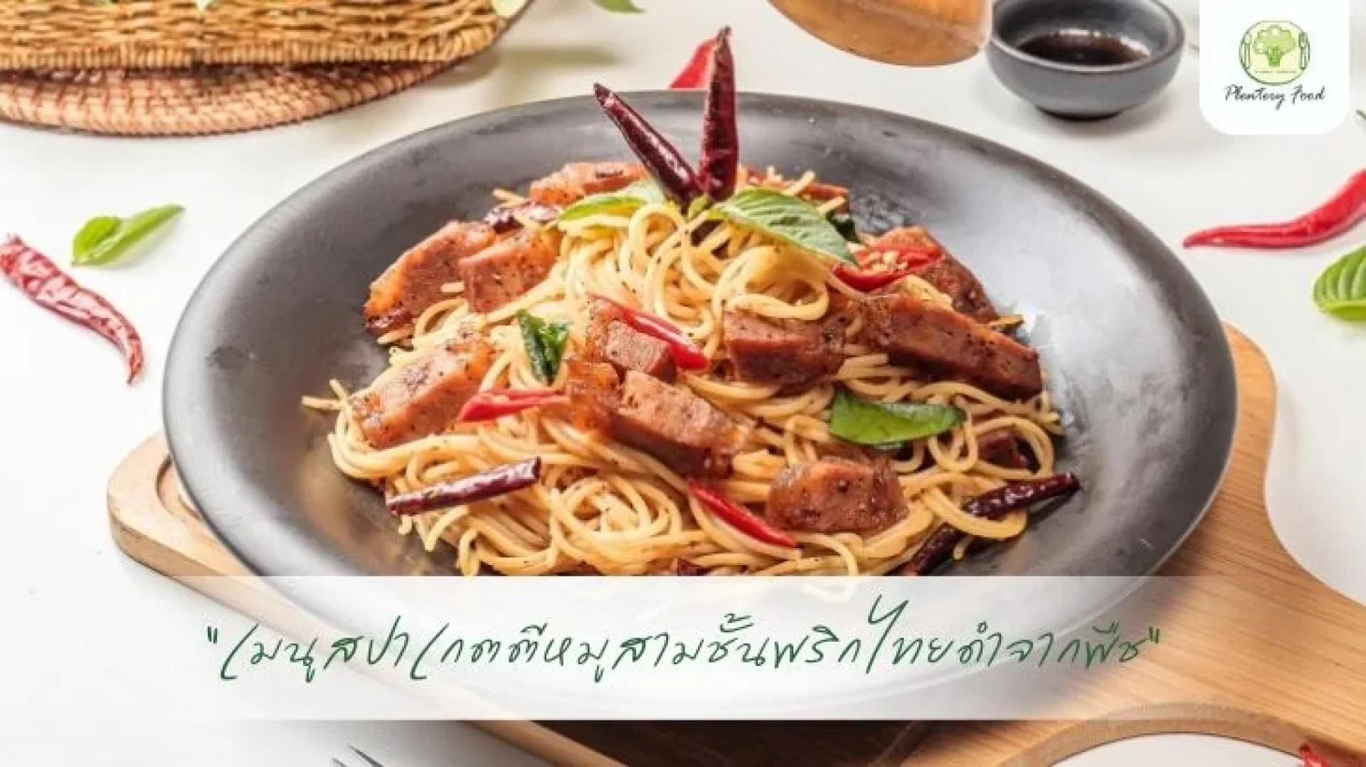 สปาเกตตีหมูสามชั้นพริกไทยดำจากพืช ความอร่อยที่ไม่ต้องพึ่งเนื้อสัตว์